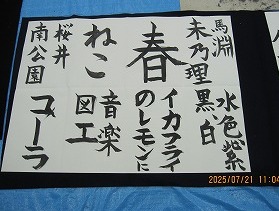 - 好きなものを書いたり、自由に大きな字を書けて、楽しかったです。紙いっぱいに字を書いて、気持ち良かったです。また参加したいです。