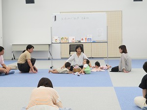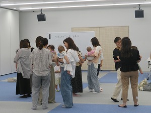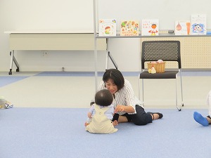 首がすわっていて、まだ歩き始めていないお子さまと保護者。ご家族も一緒にご参加いただけます。